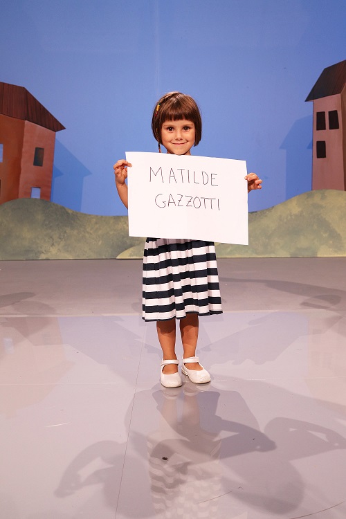 Giulia Rizzo (5 anni) di Palermo canterà insieme a Matilde Gazzotti (4 anni) di Casalecchio di Reno il brano I Pesci Parlano. Matilde ama tantissimo la pasta al pesto e Noelle, il cane dei suoi nonni. Giulia studia invece ballo e nel ‘tempo libero’ si diverte a giocare al dottore e a cucinare le polpette.