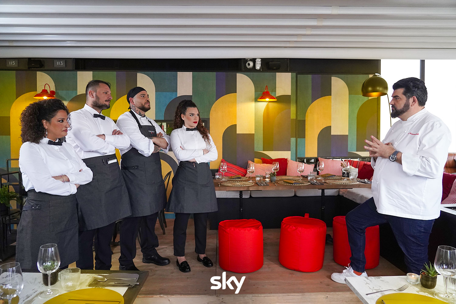Cannavacciuolo e lo staff de I Carnaloni - Cucine da Incubo 12 Zoom Cannavacciuolo e lo staff de I Carnaloni - Cucine da Incubo 12 - © US Sky Cannavacciuolo e lo staff de I Carnaloni nella prima puntata di Cucine da Incubo 12