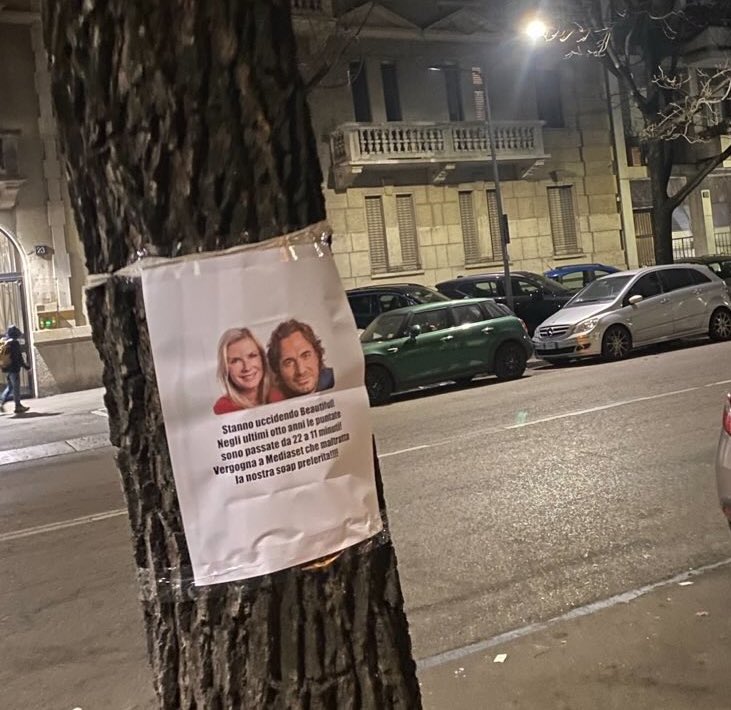 Manifesti in giro per Milano contro l’«uccisione» di Beautiful!