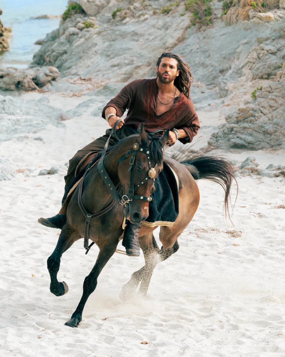 Can Yaman sul set di Sandokan, in attesa della messa in onda su Rai 1.