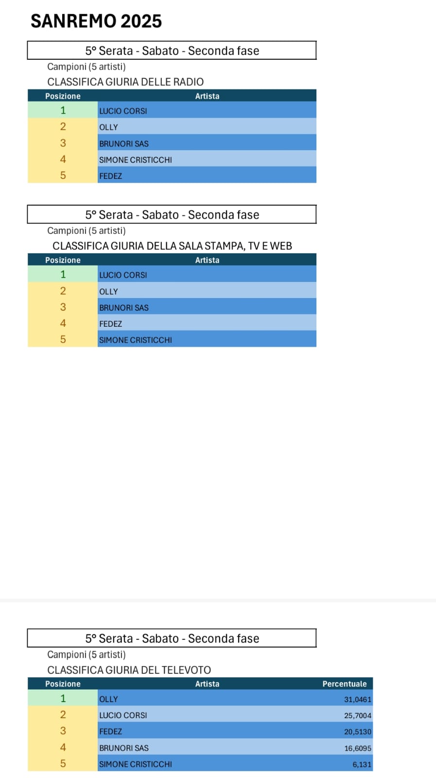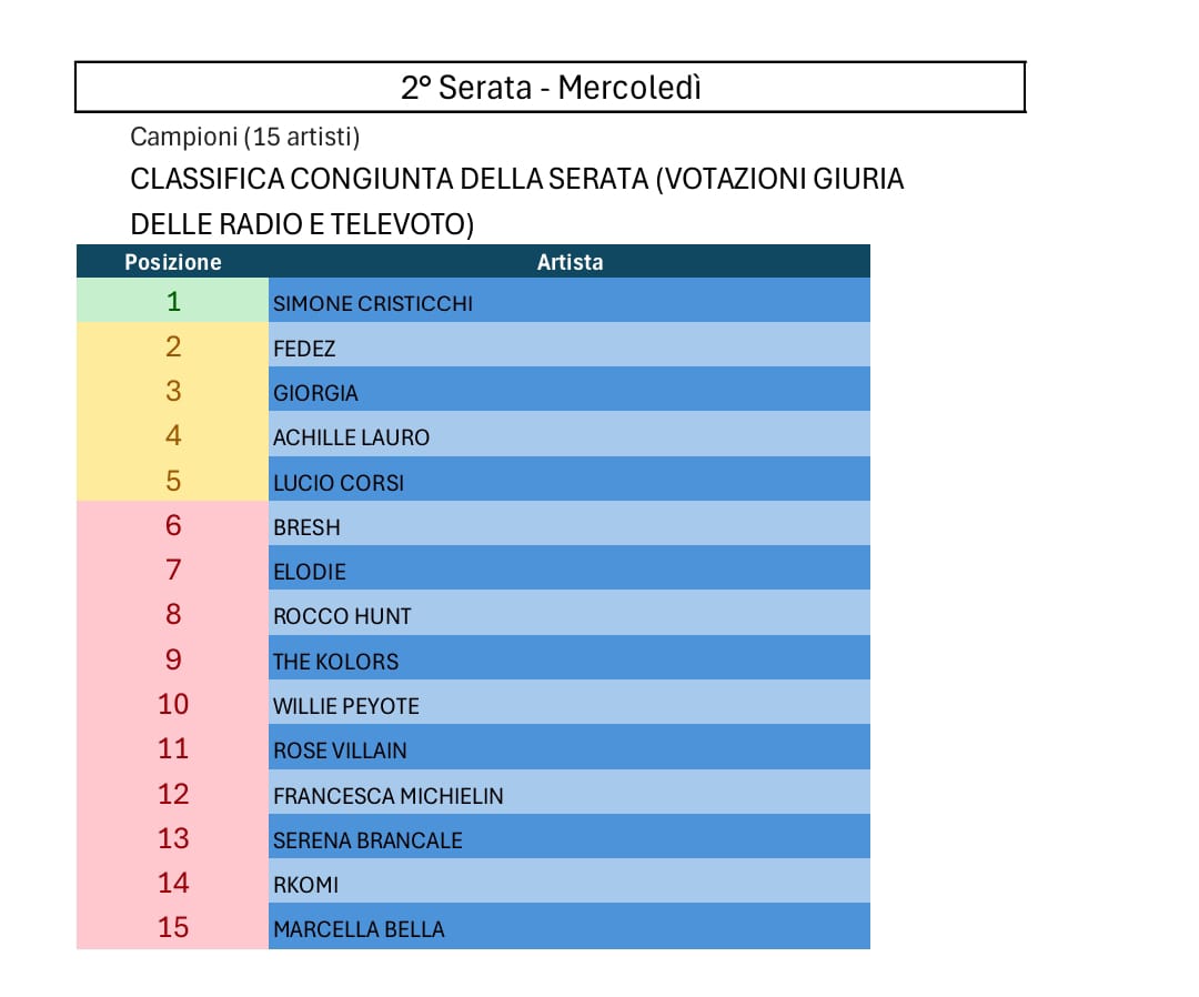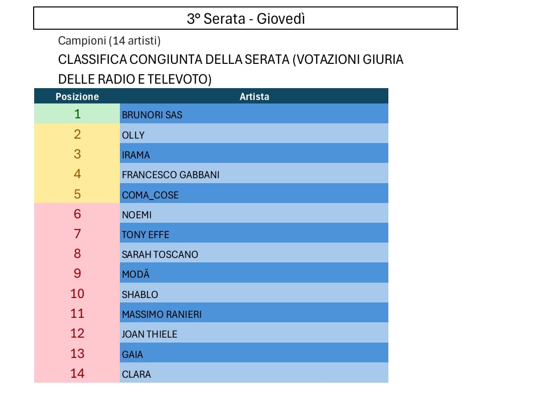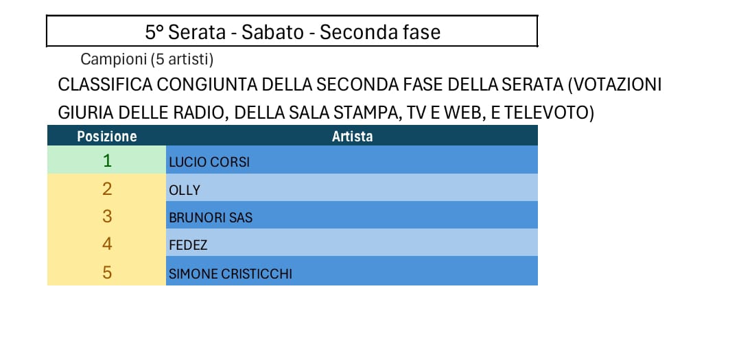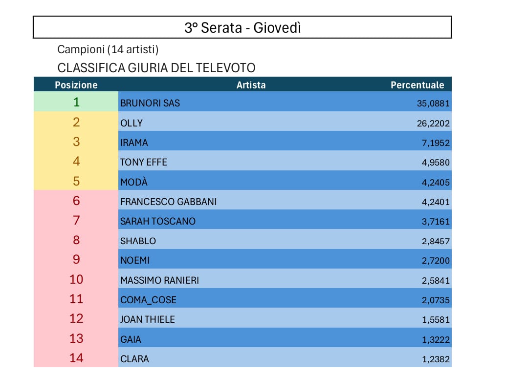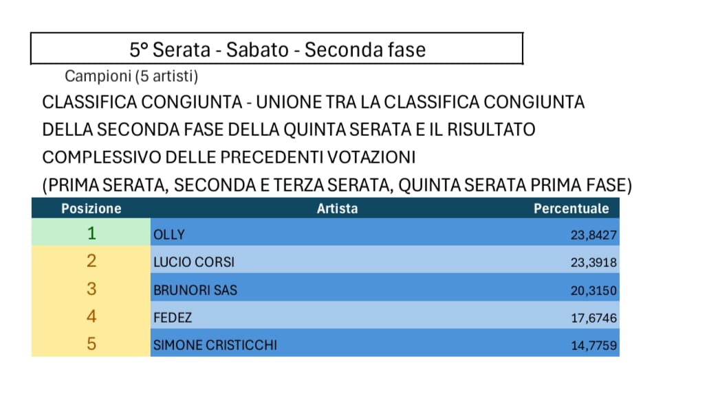 Tutte le votazioni di Sanremo 2025