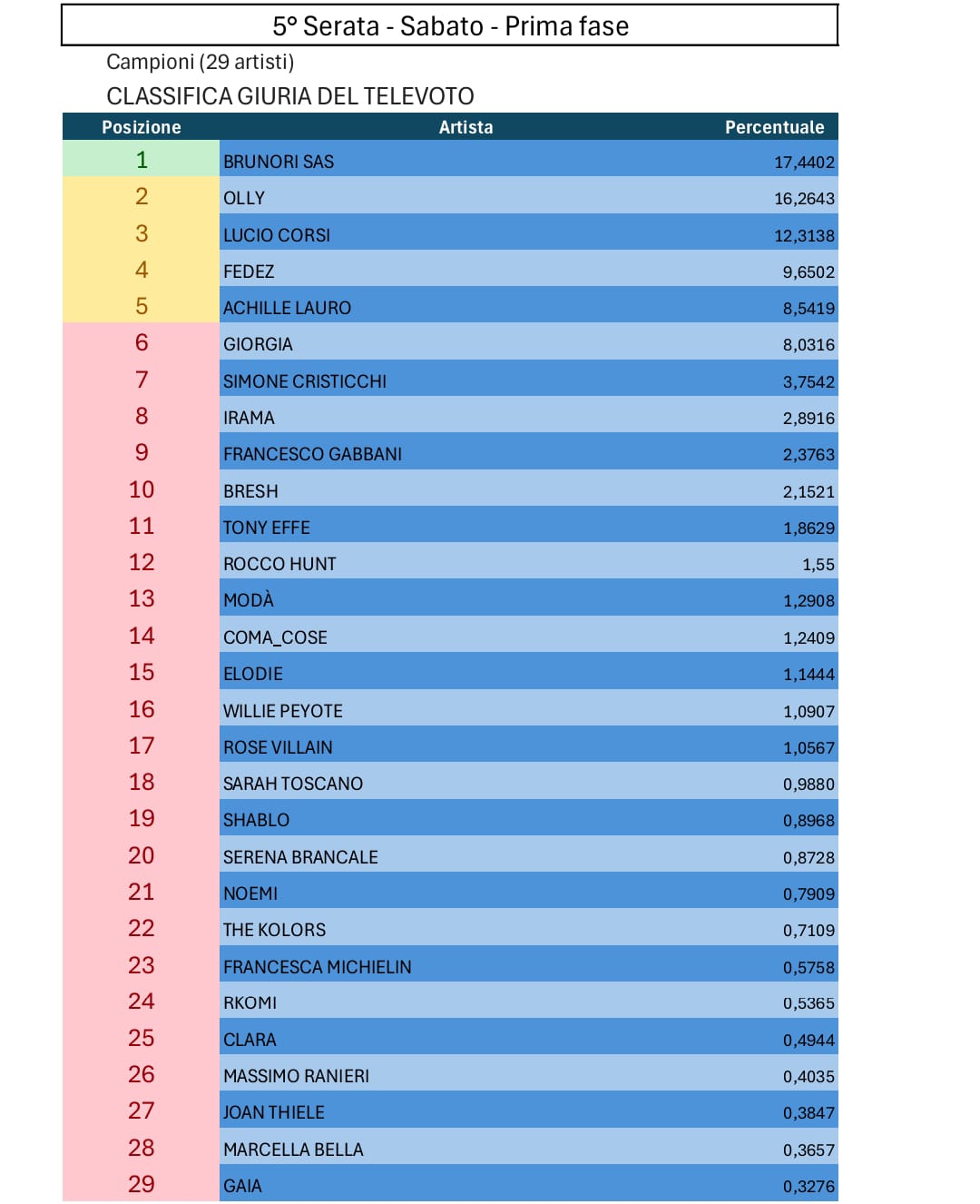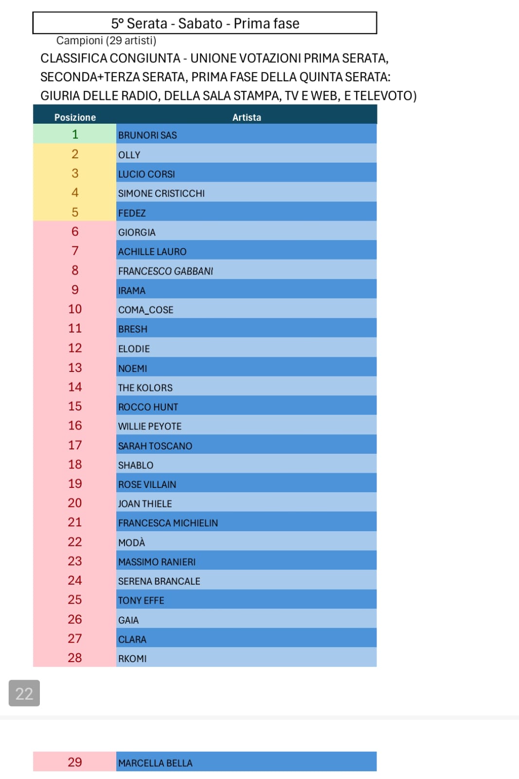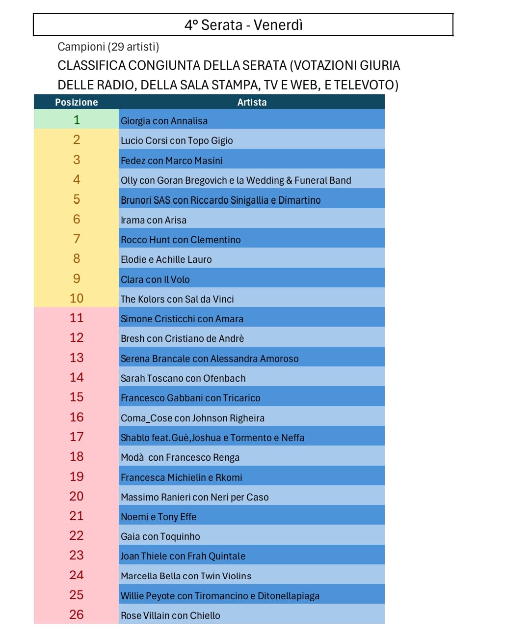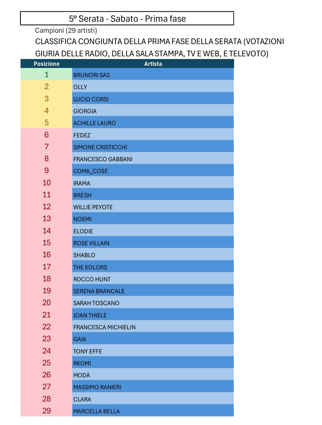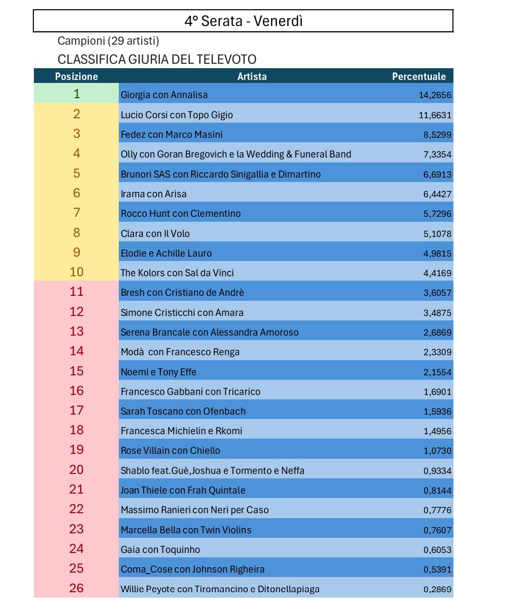 Tutte le votazioni di Sanremo 2025