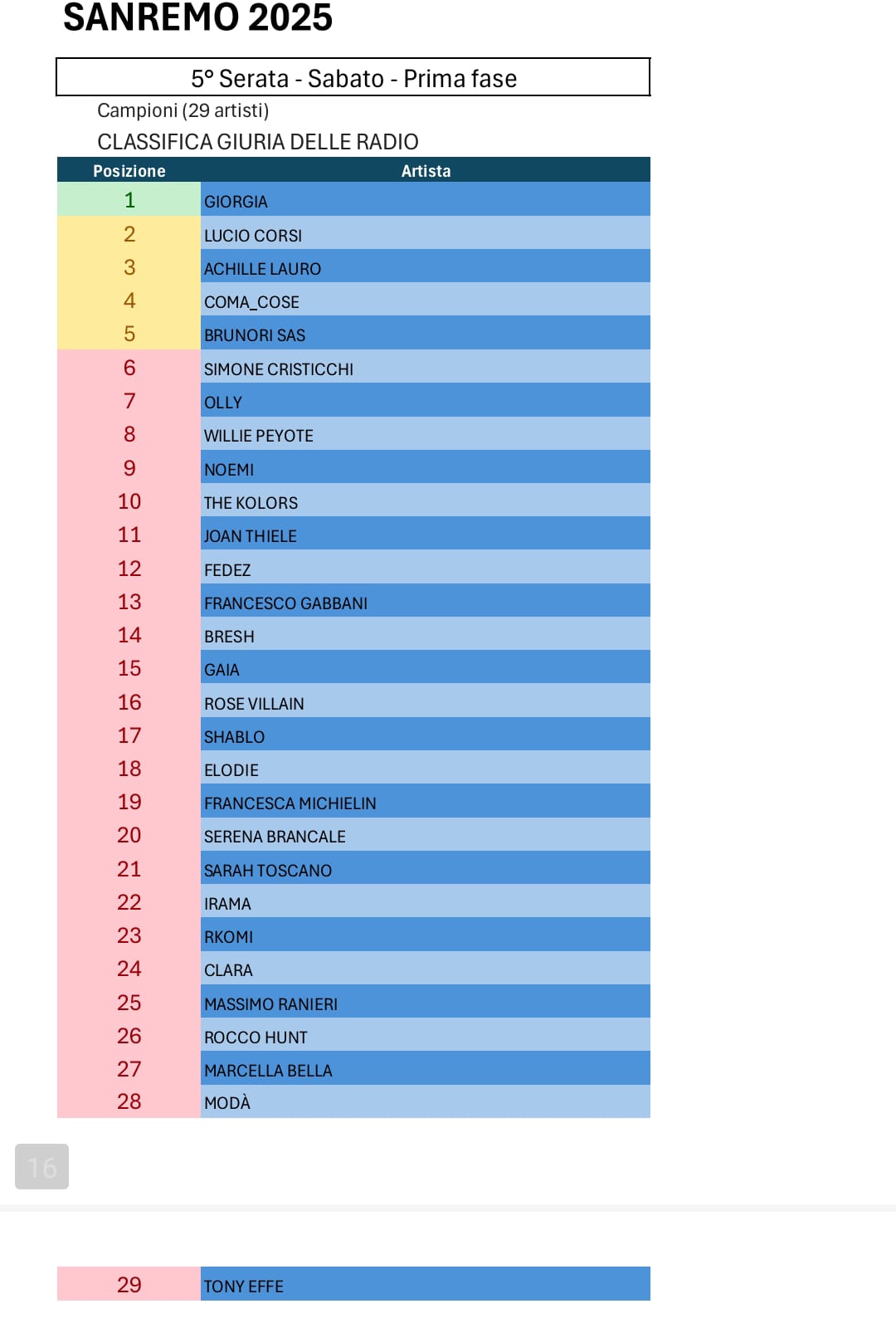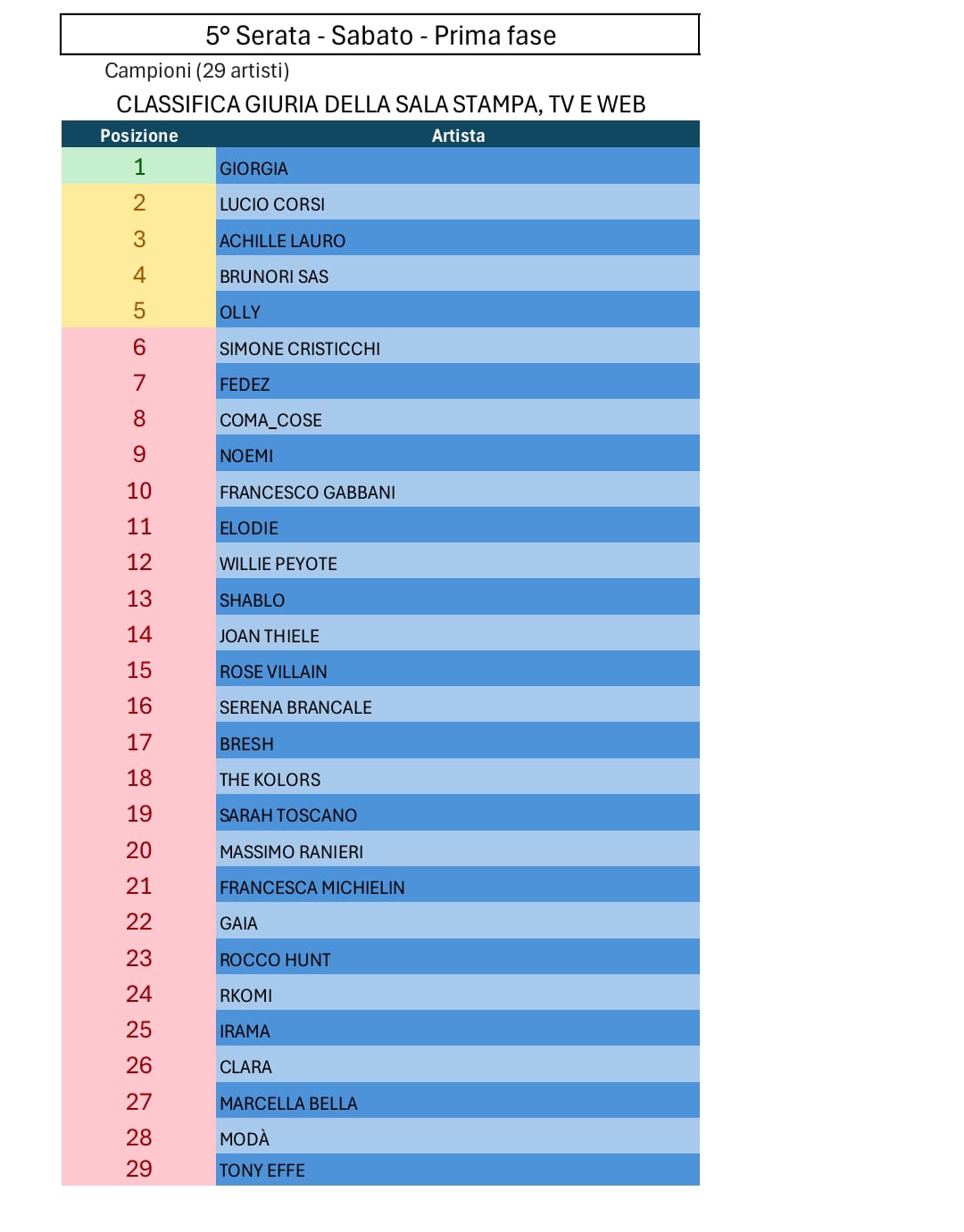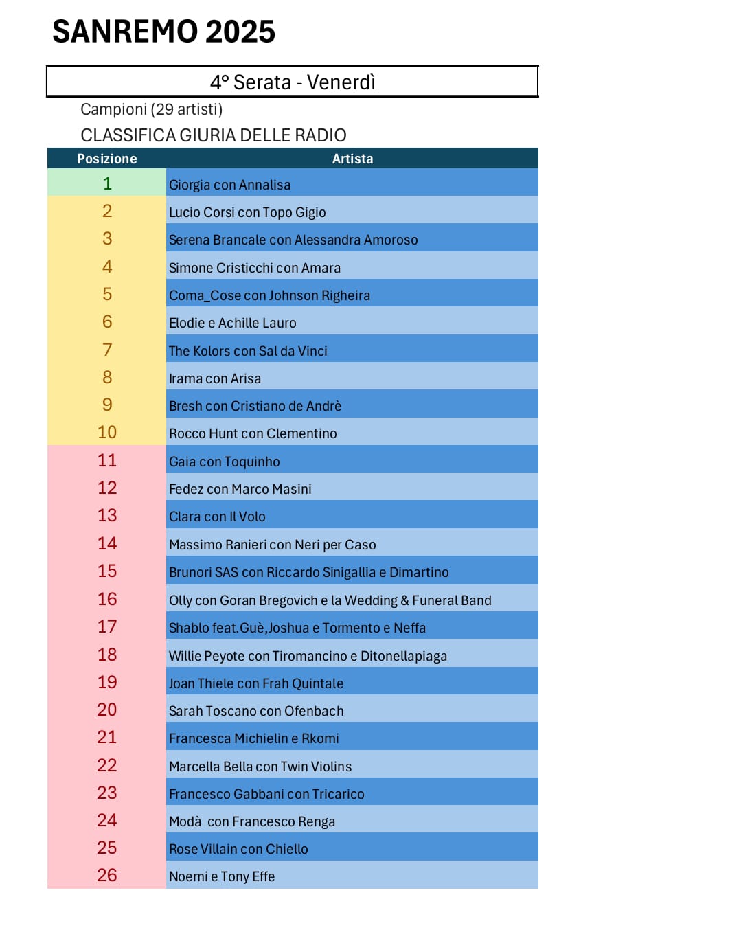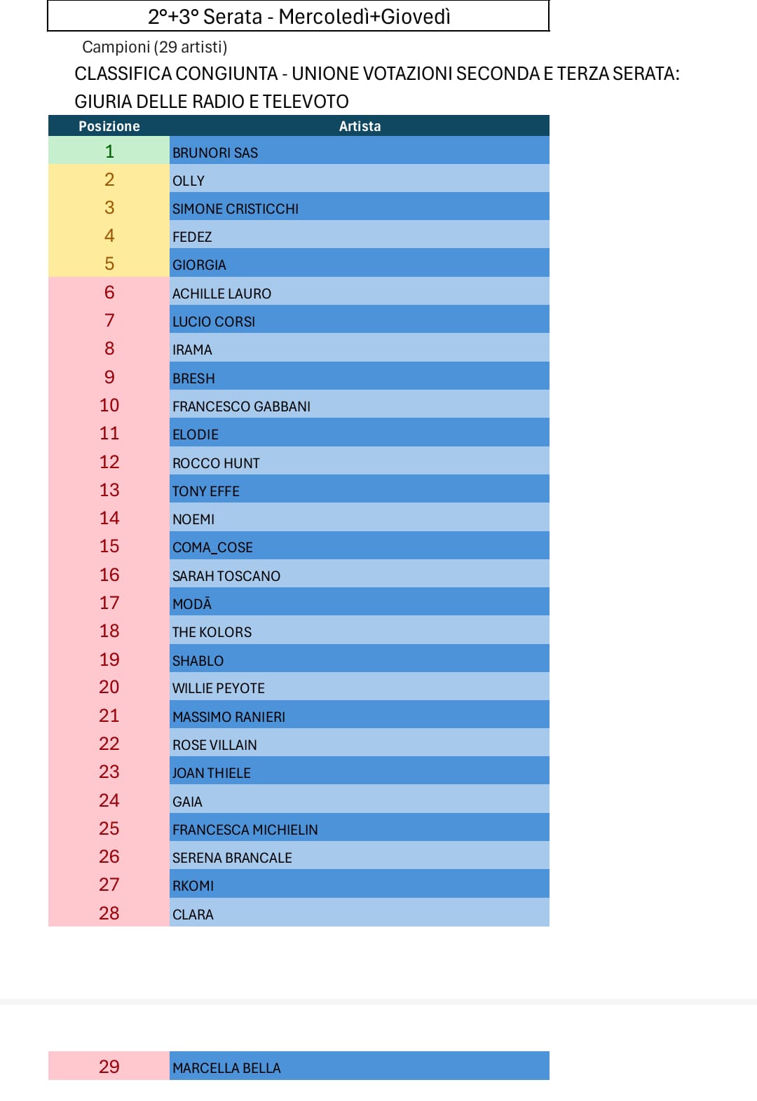 Tutte le votazioni di Sanremo 2025