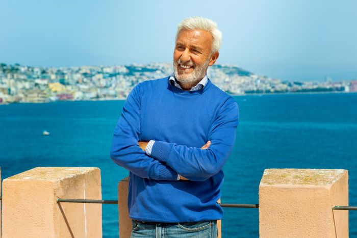 Immagini della villa e di Patrizio Rispo presenti su AirBnb: © ph. Giuseppe D'Anna per Fremantle