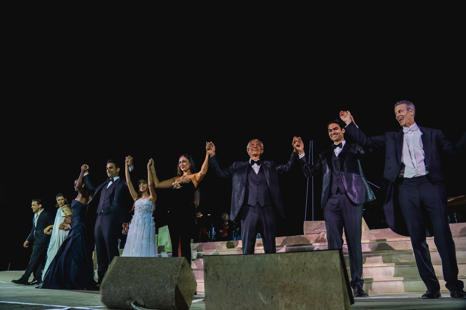 Lo spettacolo, realizzato lo scorso luglio, vedrà Bocelli esibirsi nel suo celebre repertorio ma non mancheranno anche momenti inediti e duetti, che lo vedranno protagonista sul palco con molti ospiti, tra cui i figli Amos, Matteo e Virginia Bocelli. Attesi alla prima puntata, inoltre:
