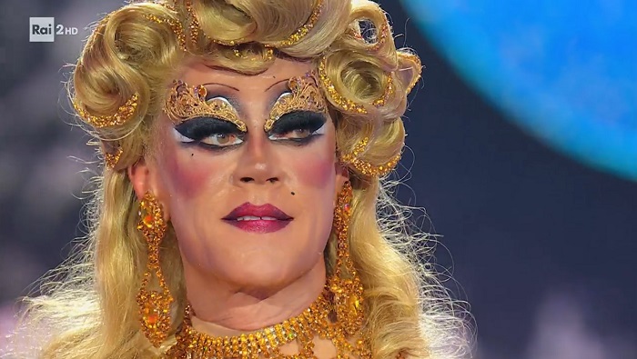 Non Sono Una Signora va finalmente in onda. Anzi, Non Sono Una Signora va in onda. Il “finalmente” viene meno quando il sentore di un Cantante Mascherato dei poveri è realtà. Già il programma di Milly Carlucci non ha entusiasmato per resa e attrattiva (e ascolti di conseguenza), esserne la “versione drag”, per quanto possa incuriosire il mondo spettacolare e “sbrilluccicoso” delle Drag Queen, non ha aggiunto nulla. Ciò che vi scrivevamo tempo fa, a proposito dello slittamento dovuto alla debole fattura del programma, è diventato lampante dopo appena pochi minuti di trasmissione. Solo un energico lavoro di “montaggio e smontaggio” ha scongiurato la catastrofe. I più attenti avranno notato una Parietti in tailleur nero per buona parte della puntata, poi in verde.