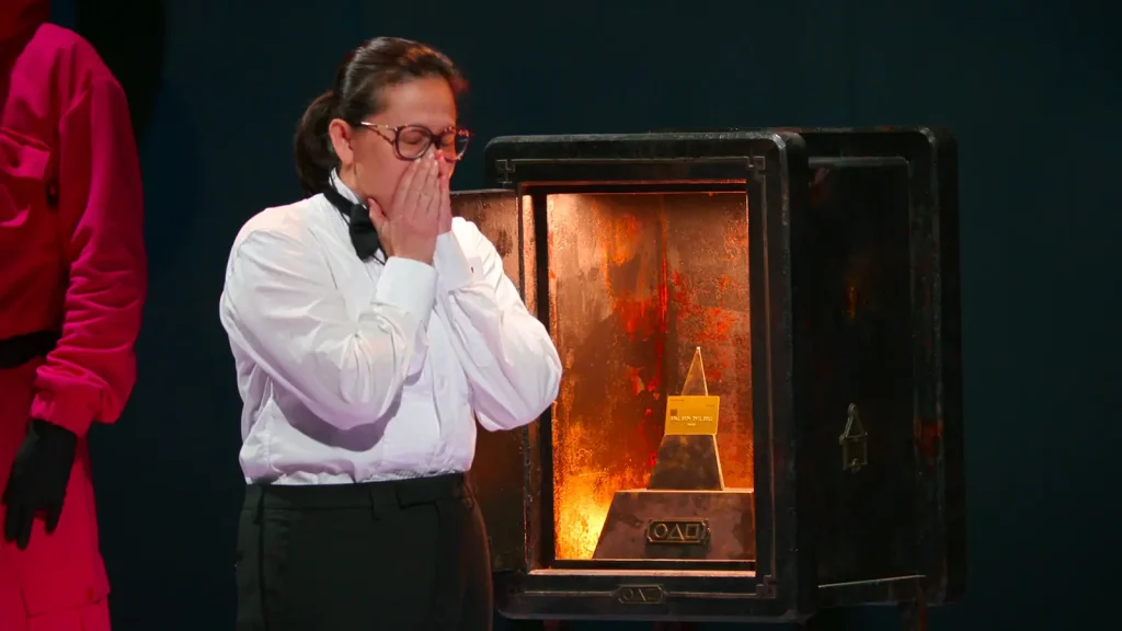 Il vincitore di Squid Game – La Sfida è Mai Whelan, giocatrice numero 287, 55 anni, americana ma originaria del Vietnam. Ha battuto Phil in una sfida multipla a sasso-carta-forbici (ad ogni round vinto veniva scelta una chiave per l’apertura di un forziere). In precedenza, per un meccanismo casuale, era stato eliminato, al termine della cena, Sam.