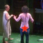 A testimoniare l’accaduto c’è una manciata di fotografie: due scatti di uno spettatore che stava assistendo allo spettacolo che hanno iniziato a fare il giro del web (sebbene sia vietato fare foto durante la rappresentazione). Durante una scena, il lato B dell’attore è inequivocabilmente scoperto, e anche più avanti nello show Kit fa mostra del suo fisico scultoreo recitando praticamente in mutande.