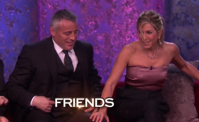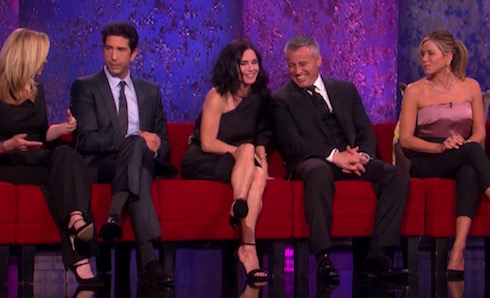 Dopo la “foto-evento”, sono arrivate le prime immagini in video: Phoebe (Lisa Kudrow), Ross (David Schwimmer), Monica (Courtney Cox), Joey (Matt Le Blanc) e Rachel (Jennifer Aniston) di nuovo insieme (senza Chandler), seduti su un divano a distanza di oltre 20 anni da “The last one”, ultimo episodio diFriends. In attesa del 21 febbraio, serata della messa in onda, NBC ha rilasciato il promo del tributo al regista James Burrows, maestro delle comedy a stelle e strisce. Pochi secondi in cui si annuncia la presenza dei cast di sitcom storiche per la tv americana come Cheers (Cin Cin per l’Italia), Will and Grace (all’appello mancava Debra Messing alias Grace, però), The Big Bang Theory e Friends.