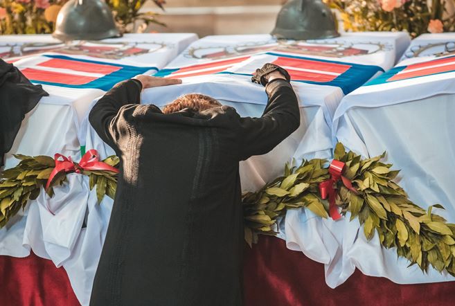Il racconto si chiude a Roma, dove il convoglio venne accolto da Vittorio Emanuele III: in tutta Italia ci fu un lungo momento di cordoglio voluto dal Ministro Gasparotto, scandito solo dai pianti delle madri, dai rintocchi delle campane e da ventun colpi di cannone. Il Milite Ignoto venne tumulato il 4 novembre 1921 all’Altare della Patria dove, ancora oggi, è vegliato senza sosta dai militari di tutte le armi che a turno rendono onore al soldato senza identità, simbolo di un Paese per una volta unito. E quando Maria morì, nel 1953, chiese di essere sepolta dietro la cattedrale di Aquileia, a fianco delle altre dieci salme di soldati ignoti che lei non scelse.