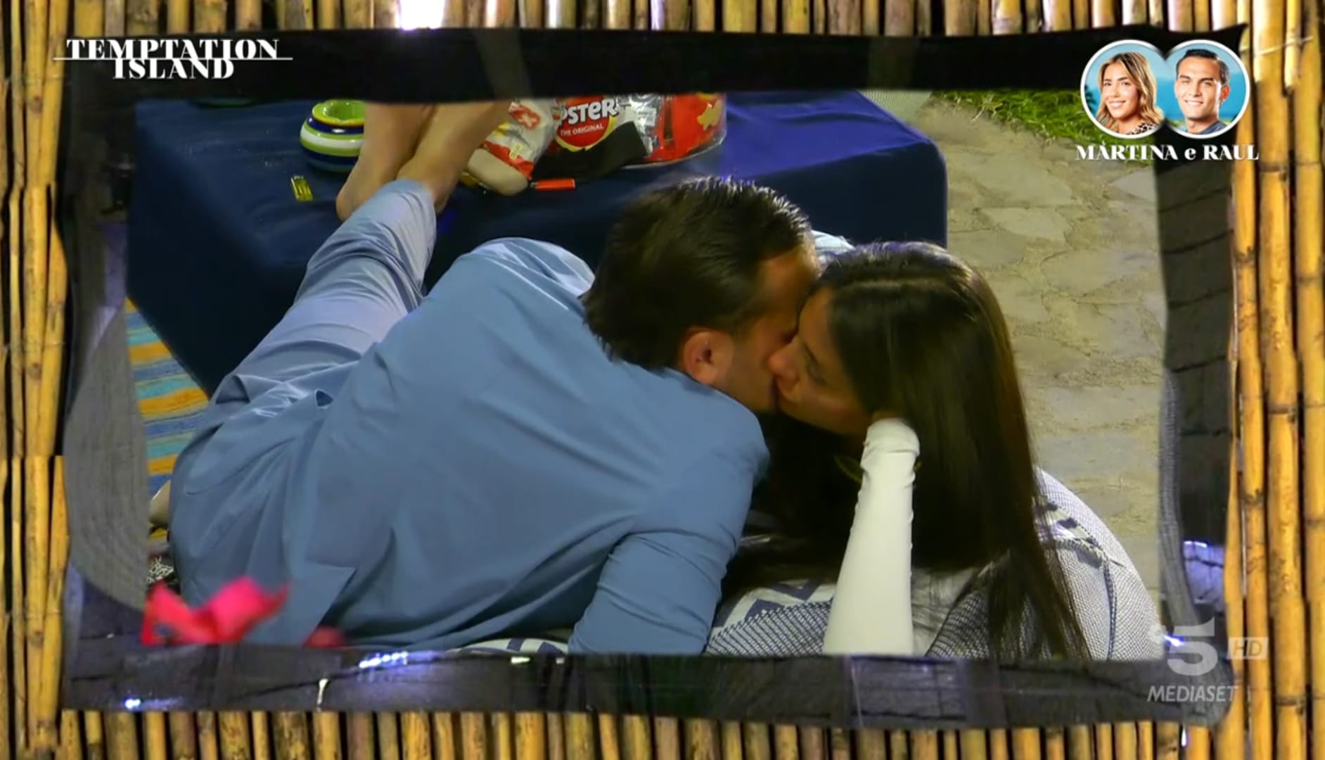 Nel pinnettu, Martina vede un video su Raul: gli altri fidanzati, Luca su tutti, gli consigliano di non far stare la fidanzata troppo tranquilla. E, guarda caso, poco dopo, Raul trascorre parte del suo tempo con la single Siriana, dandole anche dei baci sulla guancia. Seppur infastidita, Martina sostiene che Raul lo stia facendo a posta perché “non ho mai sentito nominare questa ragazza, io di Carlo (il tentatore) ne parlo dal primo giorno“. E la situazione peggiora quando Raul e Siriana sono sempre più vicini e avvinghiati. “Io non mi bacio così con Carlo“, commenta Martina.