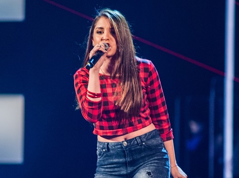 21:27 – La prima a salire sul palco è Annamaria Castaldi, 17 anni, di Genova ma abita a Olbia. Dopo la sua clip di presentazione, canta Pensa di Fabrizio Moro armata di chitarra.